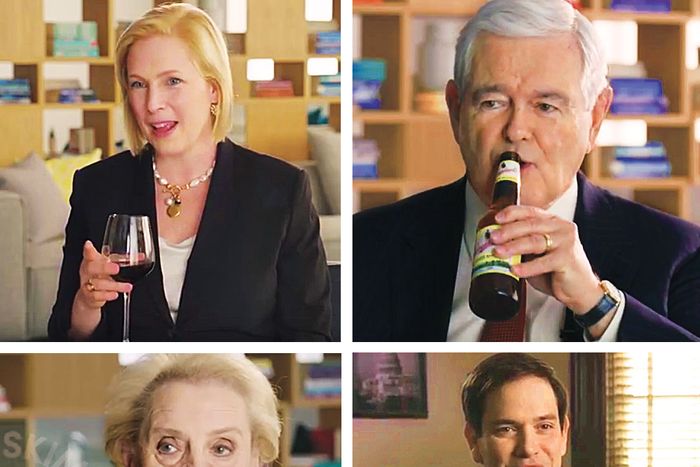 The all-hands meeting proceeded like a Harvard Business Review case study in managing millennials. Zakin and Weisberg traded turns with sororal ease (pledge leaders, not sisters), announcing new hires — the group spontaneously cheered for the exciting news that they would soon be getting their first data engineer — and “very lovely Skimmversaries” for people who were celebrating a year, or two or three, of working at the company. Managers (from the finance group, which they called Team Sunshine, and Cash Money, the ad-sales team) then fulsomely praised their employees for everyone to hear: “Alex is a true unicorn and has built up our RP and advertiser practice from the ground up as largely a one-woman show. I just know how hard you work, how much you care about Cash Money and also the brand!” Zakin and Weisberg led the crowd in singing “Happy Birthday” to a Rachel, popped a bottle of Champagne to celebrate the No Excuses launch, and introduced, to cheers, K.J., the employee leading the campaign. There was a PowerPoint, full of stats on how few female millennials actually vote and concluding with a promotional video featuring a whiplash-inducing assemblage of Tyra Banks, Marco Rubio, Issa Rae, Madeleine Albright, Ted Cruz, Kirsten Gillibrand, and Newt Gingrich, seated happily in the Skimm’s offices.