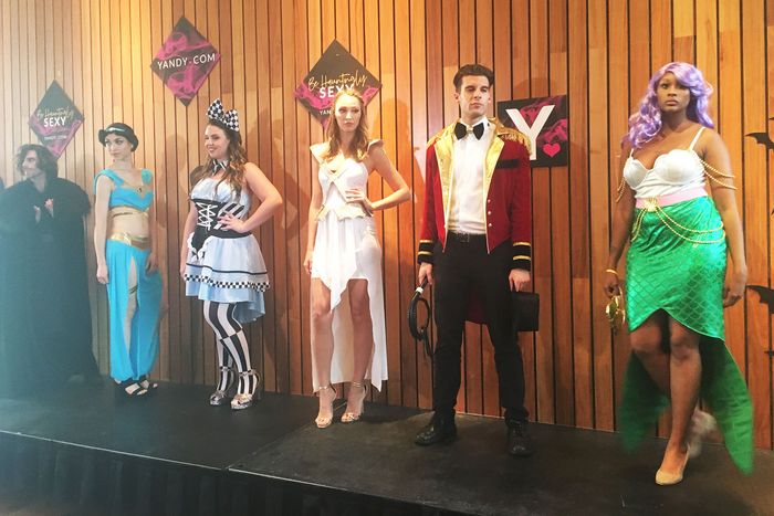 What Picasso was to paintings, what James Patterson is to crime novels for dads, Yandy is to sexy Halloween costumes. The online costume emporium, founded in 2005 by a pair of brothers in Arizona, is almost disturbingly prolific, peddling everything from your traditional Sexy Nurses and Sexy Black Cats to the more confounding Sexy Ken Bone and Sexy Poop Emoji … and Sexy Hannibal Lecter and Sexy Yoshi and Sexy Slenderman and so on. (They’re not cheap, with some options running upwards of $200.) Most notably, the brand has a remarkable knack for attaching themselves to the viral news cycle, with results that look as if the male gaze has one eye perpetually fixed on an Instagram meme account. But while their most ridiculous costumes have captivated the internet’s attention numerous times over, I had yet to see them in person — until Tuesday night, when I had the opportunity to attend Yandy’s 2018 fashion presentation.