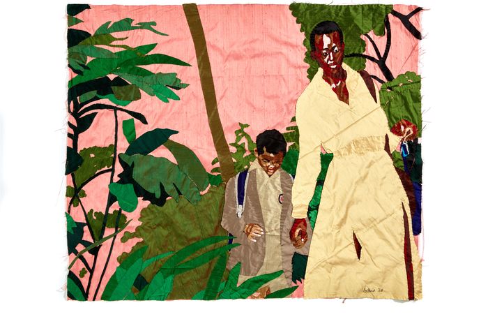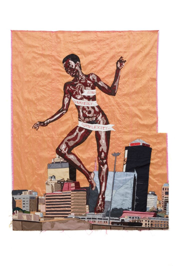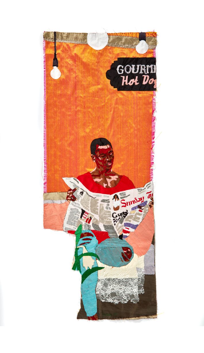 In 2010, using raw silk fabric and threads, Johannesburg-based South African–Malawian textile artist Billie Zangewa hand-stitched and embroidered an image of a larger than life Black woman rising up from the urban cityscape of Johannesburg. The weightless woman hovers sylphlike in the air, above the roof of a diminutive building, delicately holding her balance on the toes of one foot, as though dancing on pointe. It is a stance that conjures up the beauty of dancers who toil to discipline their mind and bodies until they master them in ways most of us can only dream of. A long strip of cloth is missing from the right side of fabric, misaligning the tiny pinked frayed edges running around the perimeter of the rest of the silk canvas, an imperfect frame. The tapestry is titled, “The Rebirth of Black Venus.” It marks the threshold season for Zangewa, who had been making art for over 20 years already, when she made the decision to put herself first over any and all cultural and societal expectations of who she should be as a woman. I spoke with her by phone at her home in Johannesburg for the Cut, to learn more about the motivations and ideology behind her work. “I made a choice between being a potentially unhappily married woman that society sees as safe or showing up for myself and choosing my own freedom,” she told me.