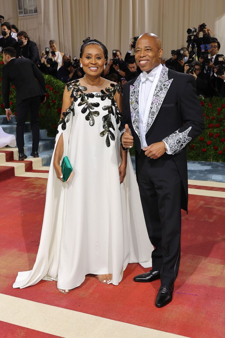 And as far as who will be there: So far, the only confirmed names are the event’s co-chairs Regina King, Blake Lively, Ryan Reynolds, and Lin-Manuel Miranda as well as designer Tom Ford, Instagram’s Adam Mosseri, and, of course, Anna Wintour. According to “Page Six,” all the Kardashian women were invited for the first time ever, so that means Pete Davidson and Travis Barker will also be there. Our colleague Sangeeta Singh-Kurutz is reporting live from the Mark and already got a glimpse of Emma Stone and Gemma Chan.