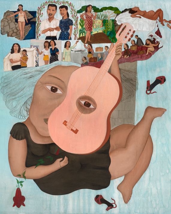Bendigame Mamita (1977), a surreal painting of the artist’s mother depicted as being immersed in a dream, remained behind closed doors in her 97-year-old mamita’s home in Santiago until the Biennial. A detail from the painting is being used as the face of the international art exhibition, the image covering the sides of water buses up and down La Serenissima.
