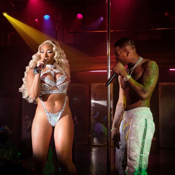As a kid watching the E! reality show Dr. 90210, Megan thought she wanted to become a plastic surgeon. The patients were so happy after the procedures. Wouldn’t it be nice to give that happiness to people? She soon realized she didn’t want to cut anybody open — she wanted to entertain them. She finally landed her breakout role this year, guest-starring as her alter ego Tina Snow on Starz’s P-Valley, playwright Katori Hall’s drama about the lives of dancers at the Pynk, a fictional Mississippi strip club. Megan auditioned for P-Valley before the world knew her as Megan Thee Stallion. “I was just coming up, and I read for Mercedes” — the lead, which went to Brandee Evans — “but seeing Brandee play Mercedes, I’m like, Obviously, I was not here yet. She’s so perfect for that role.” Still, creator Hall loved her. She remembers thinking, “This young lady has swag. She has power. She has something to say. She’s obviously gorgeous to look at. This is a young artist.” Actor J. Alphonse Nicholson, who plays rapper Lil Murda on the show and performed alongside Megan, believes this is just the beginning of a new professional turn for her. “I think she has it in her tool bag to do anything,” he says. “You could see her in a period piece, whether she’s playing someone in the 1960s trying to come up and make it, or whether she’s in a futuresque sci-fi film and she’s out here whooping ass and fighting on some Marvel stuff. I think she could bring it all to the table just because she has that glow.”