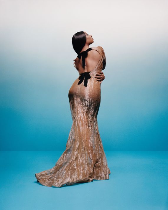 Earlier this summer, she teamed up with the French fashion house Mugler on a music video for the first single from the album, “Plan B,” which channels ’90s hip-hop — it samples a remix of Jodeci’s “Freek’n You” featuring Raekwon and Ghostface Killah — into a pissed-off single-ladies anthem: “Ladies, love yourself ’cause this shit could get ugly / That’s why it’s ‘fuck niggas, get money.’ ” Megan and her team worked with Mugler’s creative director, Casey Cadwallader, to create custom looks for the production. She was ecstatic to work with Cadwallader: “He was so passionate about what he was doing — coming together with an artist, creating a music video, creating outfits specifically for a music video.” It’s important to her not just to be part of a winning collaboration but to be a seminal element in its success. “That was me for the first time creating a world out of my head and coming together like that, and I’ve always felt like Mugler was such a clean house,” Megan says. “It’s not too much, but it’s so bold, and that’s what I am right now.”